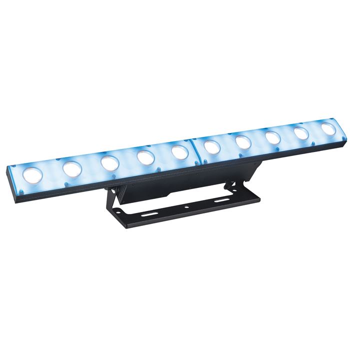 The Showtec Razor Blaze 10, is a 2-in-1 LED matrix bar equipped with 10 pcs 3 W Warm White High Power LEDs(4 beam angle) and 60 pcs RGB LEDs. Razor Blaze 10 has a 11, 20, 47, 190-channel personality to serve the basic users as well as the advanced users that would like to have full pixel control. The 11 channel mode allows users to control all basic functions and also built-in programs, 20/47/190-channel mode allow users to gain full control of all pixels to create stunning effects.