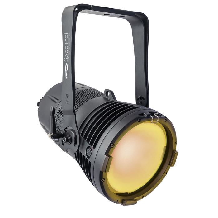 The Showtec Spectral Revo Tungsten is a reliable 140 watt 2700 K-4500 K tunable Warm White LED Spot with high CRI and IP65 rating, suitable for in- and outdoor theatre applications. Each function, including its 0100 % dimmer, 025 Hz strobe and tunable WW engine, is controllable via DMX and Master/Slave in either Manual and Auto run mode. The Spectral Revo Tungsten IP65 projects a soft field of light with a 16 fixed beam angle. Its compact and lightweight 6.5 kg design, with IP65 rating, -10~40 C operating temperature range and Forced Convection cooling, fits at almost any environment.