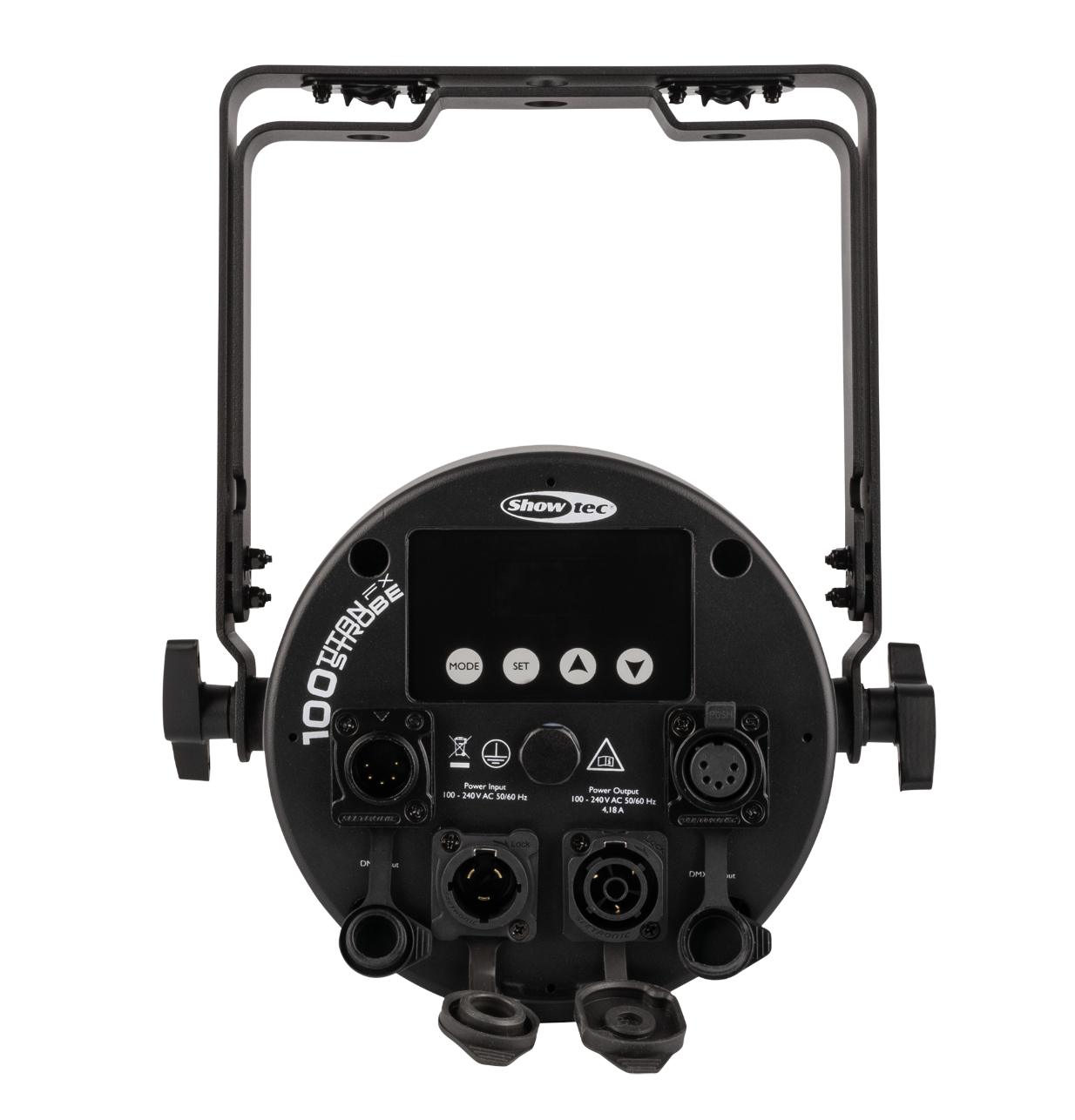 The Showtec Titan Strobe 100 FX has a cold white 100-watt COB LED in the centre surrounded by 12 individually controllable 2-watt RGBW LEDs. This allows it to produce powerful strobe effects complemented by bright colours. The Fresnel lens ensures a wide beam angle. The Titan Strobe 100 FX can be controlled by DMX. It also has RDM and can run in Master or Slave mode, as well as having a stand-alone mode with several built-in programs.
