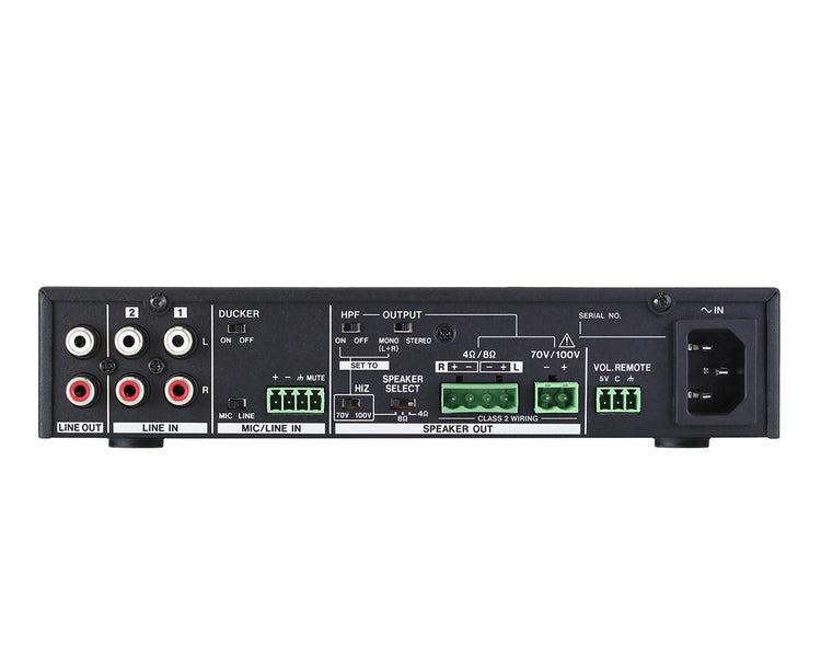The Tascam MA-BT240 is a versatile 240-watt mixing amplifier designed for professional installations in retail stores, restaurants, offices, educational facilities, and other small to mid-sized commercial environments. Combining powerful Class-D amplification with flexible speaker compatibility, it supports both low-impedance loudspeakers (4/8 ohms) and high-impedance 70 V / 100 V distributed systems. With integrated Bluetooth 5.1 streaming, a built-in mixer with mic/line inputs and ducking function, and onboard EQ with high-pass filtering, the MA-BT240 delivers reliable performance and easy system integration. Its compact 1U half-rack design allows discreet desktop placement or rack mounting using the optional AK-RM05 kit, making it an ideal all-in-one solution for background music and paging applications.