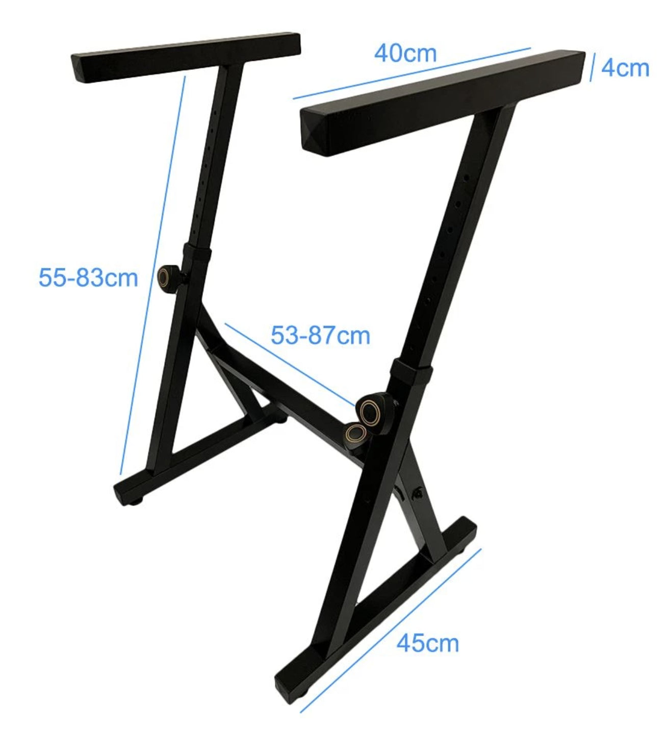 A heavy-duty keyboard/equipment stand designed to support most 88-key keyboards, flightcased CDJ/turntable/DJ mixer systems, and features separate height and width adjustment.