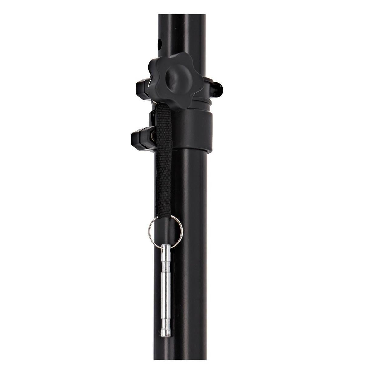 Elevate your audio setup with this innovative LED speaker stand that combines functionality with stunning visual effects. The sturdy tripod base design ensures excellent stability, whilst the height-adjustable pole allows you to position your speakers at the optimal level. The standout feature is the integrated colour-changing LED light strip, which creates an impressive atmospheric display, perfect for DJs, live performances, or home entertainment setups. The robust black metal construction features a secure locking mechanism with a safety pin, and convenient adjustment knobs for easy height modifications. The tripod legs fold compactly for straightforward transport and storage. Whether you're a professional sound engineer or enthusiast, this versatile stand adds both practical support and visual enhancement to your audio equipment. The built-in LED system offers multiple colour options to match your venue's ambiance or performance requirements.