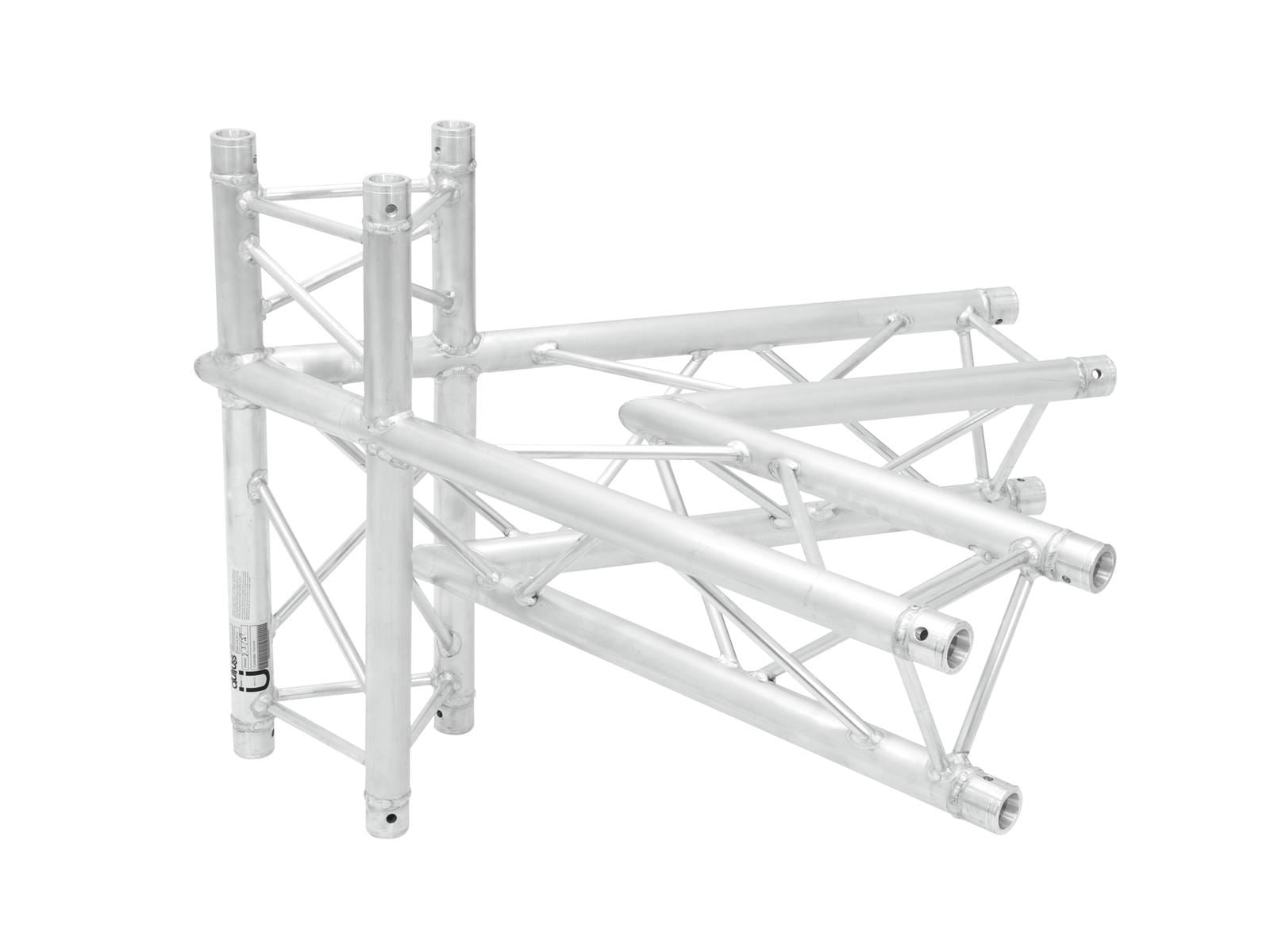 TRILOCK 6082 3-point truss system TRILOCK 6082 is a 3-point truss system made of aluminum. The individual elements are connected via three cones, pivots and pins. TRILOCK 6082 is made of EN-AW 6082 T6 (AlMgSi1 T6) alloy for even higher loads. The advantage of the conical connection system is that the cones completely fit into the main chords so that highest load capacity is guaranteed. The Quick-Lock system enables fast, efficient and highly aesthetic assembly when the truss constructions are frequently assembled and dismantled. The three main chords are made of 50 mm aluminum tube with 2 mm wall thickness and offer a good relation between strength and weight. The braces have a diameter of 16 mm with 2 mm wall thickness and leave enough space for installing couplers, hooks and clamps. With 290 and 257 mm outer dimensions, TRILOCK QTTR is a stable truss system for higher loads and extended durability. This system is mainly designed for intense use in stage installations, fair installations, event installations but also for permanent installations in discotheques and theatres. Its polished surface makes this universal system a real eye-catcher. Due to its wide range of standard system lengths, corners, circles and accessory, this system is highly versatile and offers unlimited design possibilities. The production of this truss system is TUV-monitored. The load table as calculation base can be downloaded from the Internet before buying the product! Please note: this truss system must never be combined with other systems!