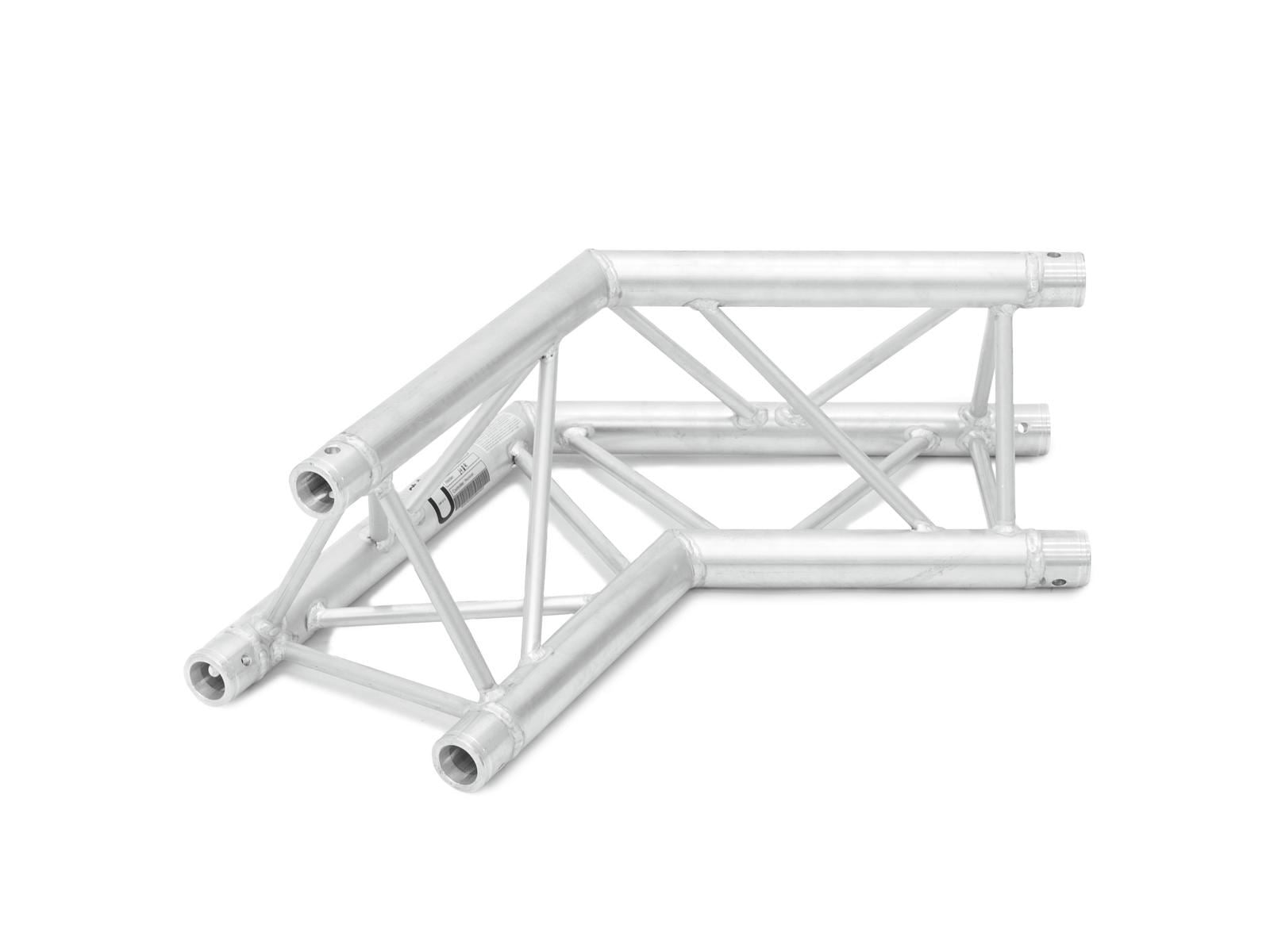 TRILOCK 6082 3-point truss system TRILOCK 6082 is a 3-point truss system made of aluminum. The individual elements are connected via three cones, pivots and pins. TRILOCK 6082 is made of EN-AW 6082 T6 (AlMgSi1 T6) alloy for even higher loads. The advantage of the conical connection system is that the cones completely fit into the main chords so that highest load capacity is guaranteed. The Quick-Lock system enables fast, efficient and highly aesthetic assembly when the truss constructions are frequently assembled and dismantled. The three main chords are made of 50 mm aluminum tube with 2 mm wall thickness and offer a good relation between strength and weight. The braces have a diameter of 16 mm with 2 mm wall thickness and leave enough space for installing couplers, hooks and clamps. With 290 and 257 mm outer dimensions, TRILOCK QTTR is a stable truss system for higher loads and extended durability. This system is mainly designed for intense use in stage installations, fair installations, event installations but also for permanent installations in discotheques and theatres. Its polished surface makes this universal system a real eye-catcher. Due to its wide range of standard system lengths, corners, circles and accessory, this system is highly versatile and offers unlimited design possibilities. The production of this truss system is TUV-monitored. The load table as calculation base can be downloaded from the Internet before buying the product! Please note: this truss system must never be combined with other systems!