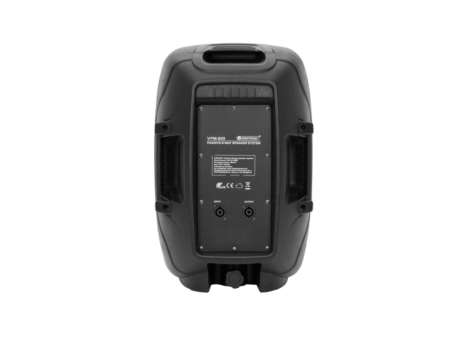 Speakers: | 1 x compression tweeter highs (1") approx 2,5 cm with ferrit magnet Voice coil compression tweeter highs (1") approx 2,5 cm Horn vent (1") approx 2,5 cm 1 x woofer (10") approx 25 cm with ferrit magnet Voice coil lows (1.5") approx 4 cm |