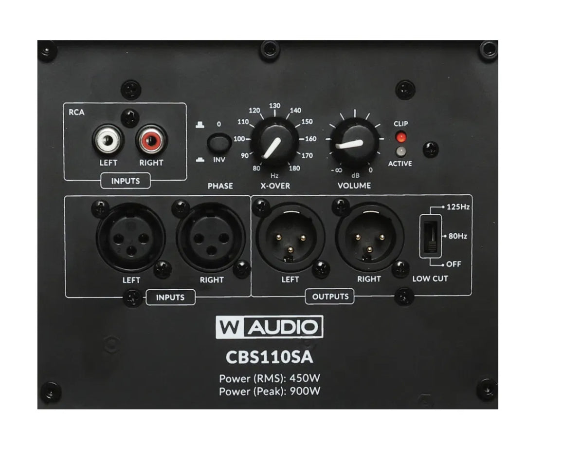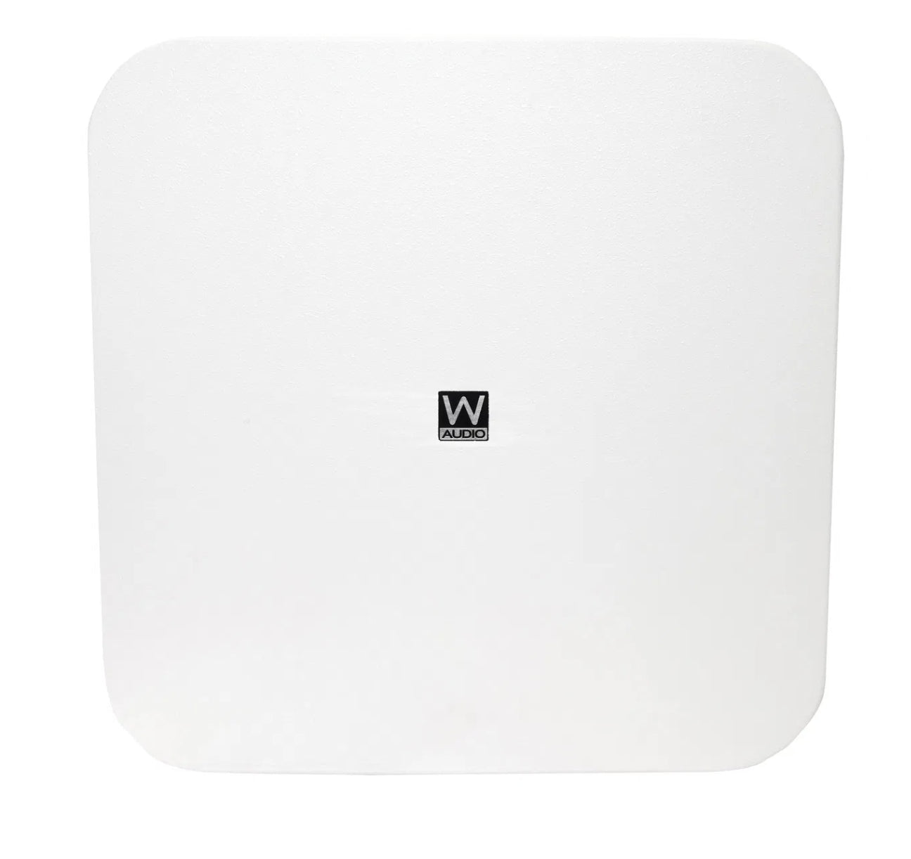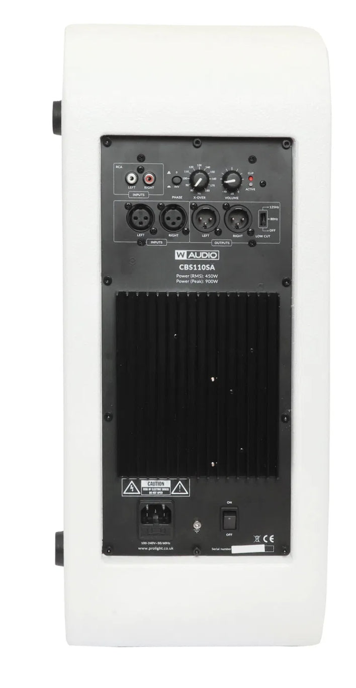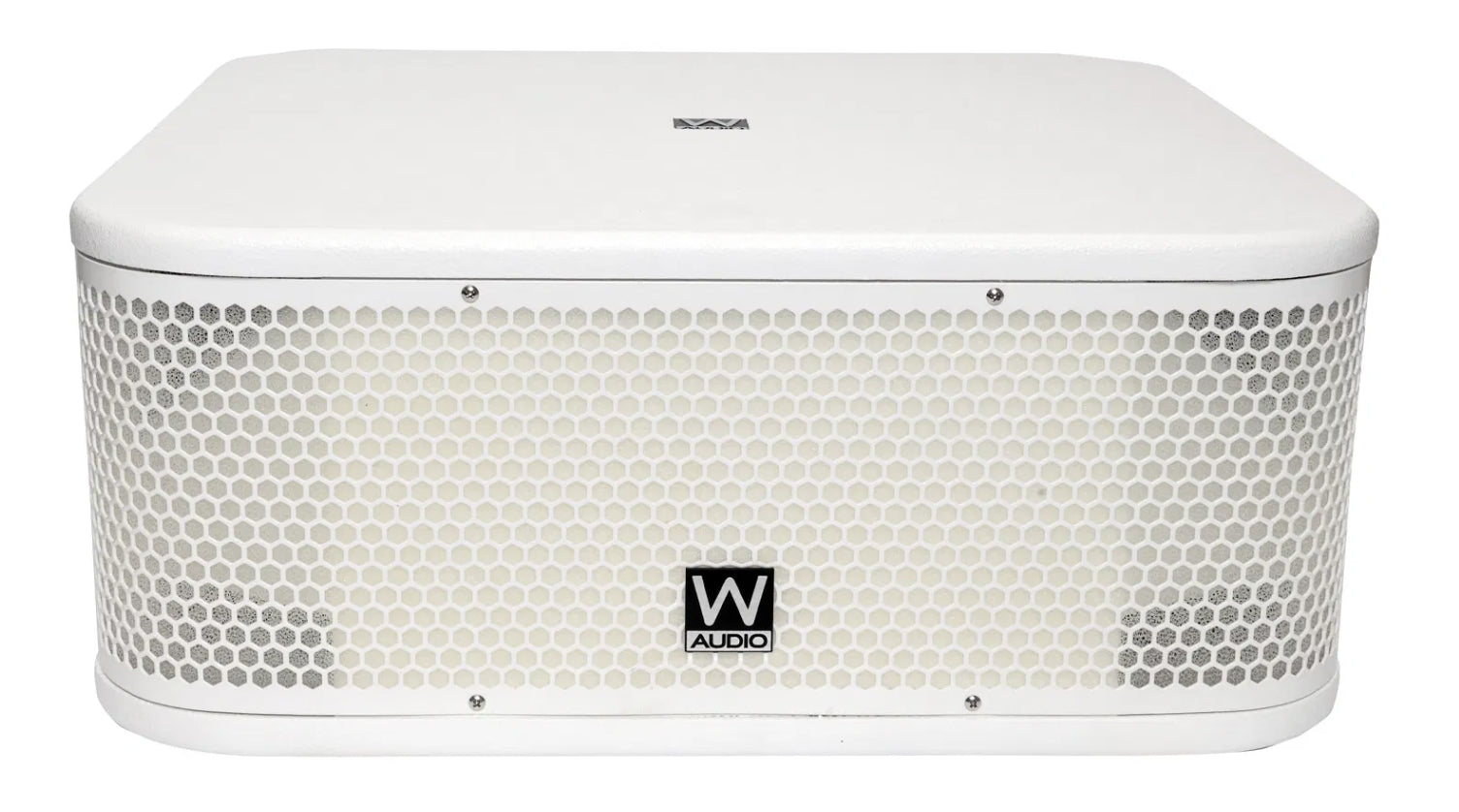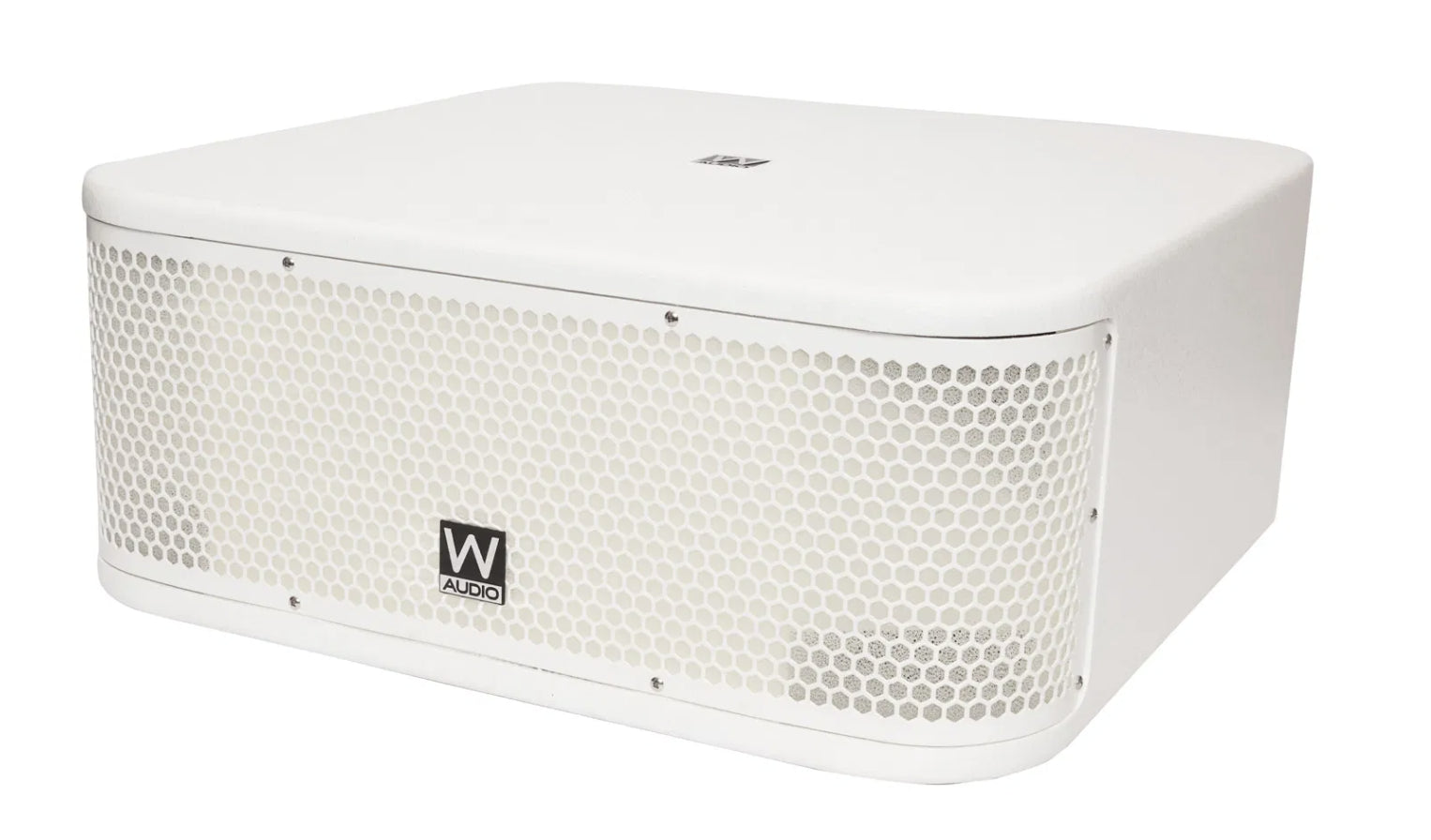 The W Audio CBS110SA in white is a 10” active subwoofer designed for discreet yet powerful low-frequency reinforcement in commercial audio installations. Constructed from birch ply, it features a labyrinth acoustic structure for enhanced bass response. The built-in 450W Class D amplifier delivers consistent, high-quality audio, while the integrated DSP processor provides filtering functions and speaker protection.